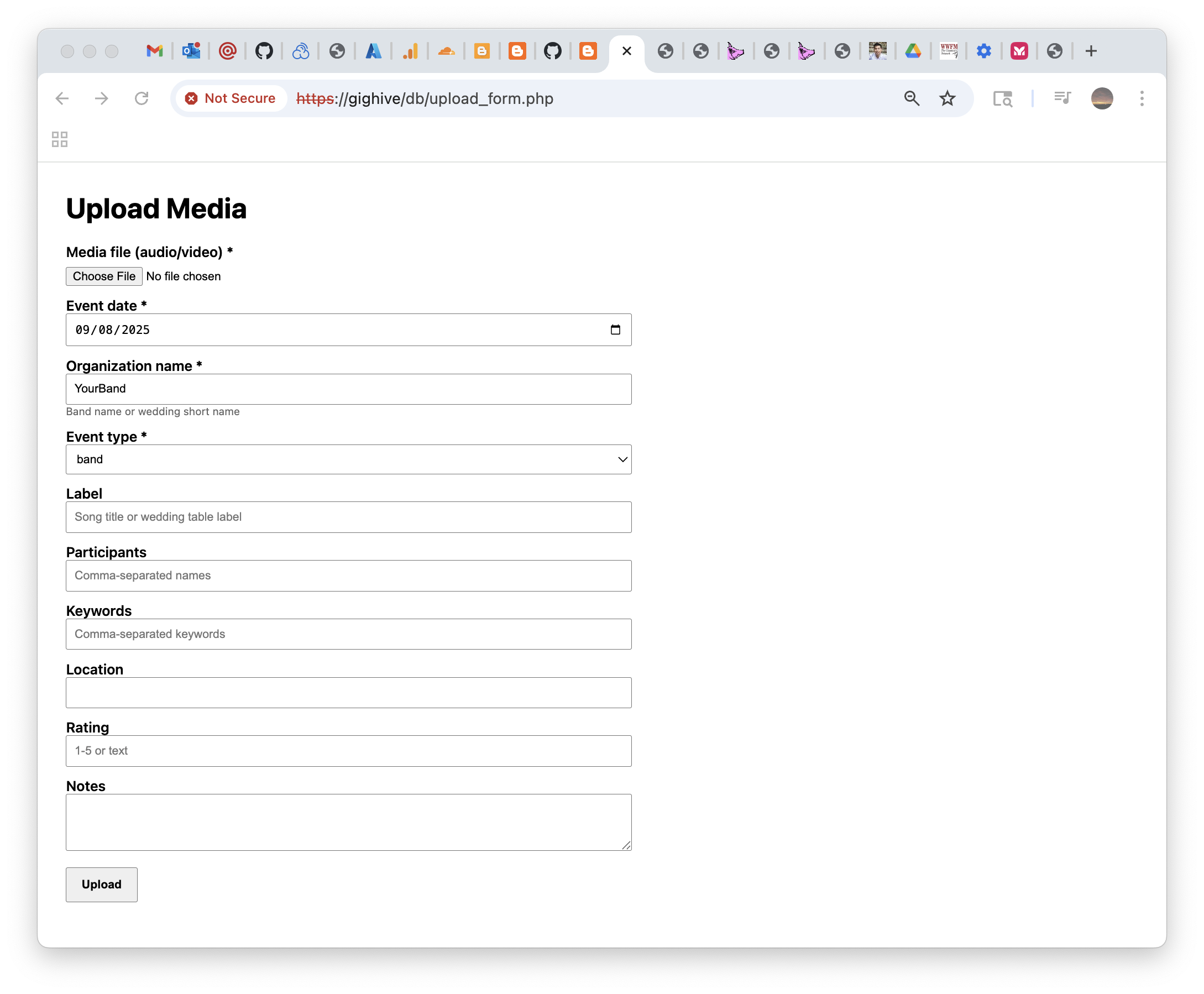- Last but not least, Gighive is simple. There is one page for the media library and one upload utility..that’s all.